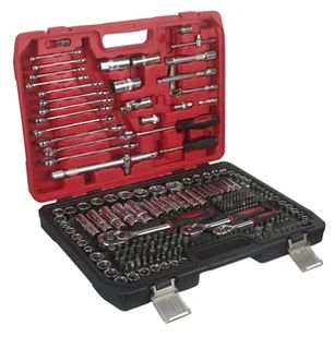 Zestaw kluczy nasadowych CRV Nasadki 1/2": 10 11 12 13 14 15 17 19 20 21 22 24 mm, L= 38 mm 27 30 32 mm, L= 42 mm. Nasadki długie 1/2": 16 17 18 19 22 mm, L= 76 mm. Nasadki 1/2" torx: