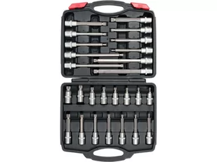 Zestaw 26 kluczy trzpieniowych Spline przeznaczonych do odkręcania śrub. Stosowane do obsługi samochodów, maszyn budowlanych, produkcyjnych i rolniczych.