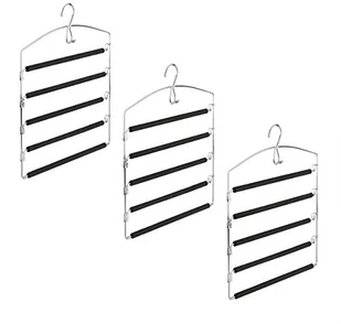 ok. 34,5 cm - Odległość między prętami: ok. 6 cm - Materiał: chromowane żelazo, pianka EVA - Waga: ok. 360 g - Kolor: czarny, srebrny Wiele wieszaków na spodnie - Rozkładane wieszaki na spodnie - Przechowywanie spodni i spódnic - Z małym haczykiem na pasek - Drążki mogą być obsługiwane indywidualnie - Czarna piankowa wyściółka - Z wytrzymałym metalowym haczykiemZakres dostawy - 1 lub 3 x wieszaki na spodnie - ElementyReplika acyjne nie wchodzą w zakres dostawy