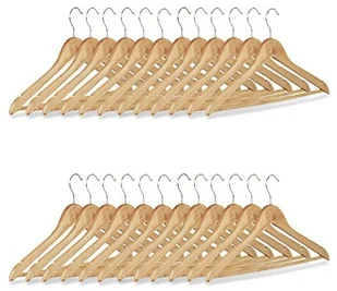Z pomocą naszych zestawów wieszaków na ubrania możesz bez obaw stawić czoła tłumowi gości w noc imprezy. Możesz wreszcie pożegnać się z niestabilnymi plastikowymi wieszakami na płaszcze. Dzięki wieszakom na spodnie wykonanym z naturalnie pięknego drewna klonowego można nie tylko powiesić kurtki, spodnie lub spódnice bez zsuwania się, ale także cieszyć oko jednolitym i wysokiej jakości wyglądem. Wystarczy obrócić błyszczące haczyki, gdy są potrzebne - praktyczne! Zestawy wieszaków na płaszcze w szczegółach - W zestawie po 12, 24 lub 48 sztuk - Wymiary całkowite wys. x szer. x gł. : ok. 22,5 x 44,5 x 1,3 cm - Długość drążka: