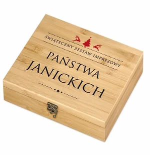 Spersonalizowany zestaw do wina i piwa z elektronicznym korkociągiem i nadrukiem na drewnianej skrzynce.