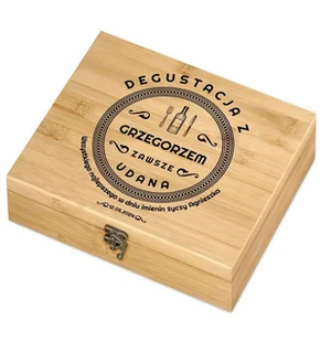 Spersonalizowany zestaw do wina i piwa z elektronicznym korkociągiem i nadrukiem na drewnianej skrzynce.