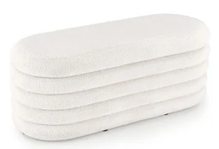 Cechy ławki z pojemnikiem Shiva Wyjątkowy design i owalny kształt, które dodają elegancji i uroku Twojemu wnętrzu. Wysokogatunkowa tkanina boucle, która zapewnia komfort siedzenia i trwałość. Praktyczny pojemnik wewnątrz siedziska, idealny do przechowywania różnych przedmiotów i utrzymania porządku. Subtelne pikowania, które dodają oryginalności i wyjątkowego charakteru siedzisku. Kremowa ławka z pojemnikiem Shiva Materiały gwarantujące 100% satysfakcji Wysokogatunkowa tkanina boucle, która jest miękka, trwała i odporna na zniszczenia.