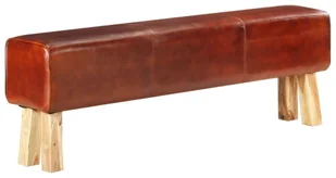 Ta ławka posiada wytrzymałe siedzisko z prawdziwej skóry, zapewniające wyjątkową wygodę. Ławka inspirowana kozłem gimnastycznym jest wsparta na solidnych nogach z drewna mango, dzięki czemu jest stabilna i wytrzymała. Co więcej gruba wyściółka zapewnia dodatkowy komfort.
