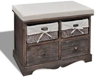 W komplecie z dwoma plecionymi koszami i dwiema drewnianymi szufladami ta trwała ławka zapewni mnóstwo miejsca do przechowywania cennych przedmiotów, wnosząc jednocześnie rustykalny styl do Twojego wnętrza. Na górze znajduje się poduszka do wygodnego siedzenia. Ławka idealnie sprawdzi się na Twojej werandzie, w przedpokoju, sypialni i innych, lubianych przez Ciebie pomieszczeniach.