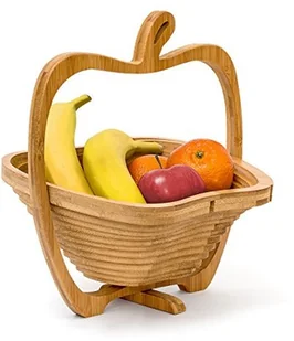 Relaxdays Kosz składany jabłko wys. x szer. x głęb.: 30 x 27 x 22,5 cm składany kosz z bambusa koszyk na owoce i coaster deska do krojenia do złożenia drewniana miska na owoce z oryginalnym motywem w 10019142