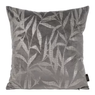 Eurofirany Elegancka, aksamitna poszewka na poduszkę z nadrukiem, 45 x 45 cm, poszewka na poduszkę, aksamitna, miękka poduszka na sofę, wzór liści 1, srebrna