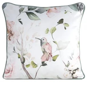 Eurofirany Poszewka dekoracyjna 45x45 Inez biała zielona liście ptaszek welurowa