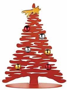 Nowoczesna dekoracja świąteczna. Stalowa choinka Alessi, zaprojektowana przez Massimo Giacona, to nowoczesna dekoracja świąteczna. Wykonana z czerwonej stali, ma wysokość 30 cm i jest wyposażona w zestaw magnesów przedstawiających postacie babbo natale, anioła, kota i dzieci. Wśród magnesów znajdują się również gwiazdy i prezenty, co pozwala na tworzenie różnych, kreatywnych kompozycji. Może być wykorzystana jako dekoracja w domu, a także w biurze.