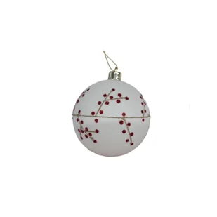 Bombka plastikowa dekorowana brokatem gałązki 8 cm biało-czerwony