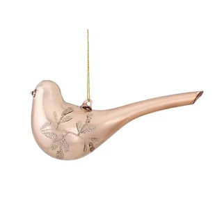 Szklana bombka choinkowa PTASZEK Bombka choinkowa przedstawiająca ptaszka, zdobiona brokatem. Ptaszek jest w stonowanym odcieniu złota / beżu. Błyszczące wykończenie wraz z brokatową dekoracją po bokach sprawiają, że zawieszka pięknie mieni się w świetle. Ptaszek ma szklaną pętelkę ze złotym sznurkiem, dzięki czemu łatwo i szybko zawiesisz go na gałązce. Dzięki szklanym bombkom od Villa Italia pięknie udekorujesz swój dom na święta.