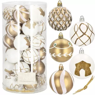 Bombki choinkowe to nieodłączny element wystroju choinki, dzięki któremu bożonarodzeniowe drzewka błyszczą się i mienią w świetle świątecznych lampek. Z naszym zestawem złoto-białych bombek choinkowych stworzysz jedyne w swoim rodzaju dekoracje i nadasz wnętrzom niepowtarzalnego klimatu bożonarodzeniowego. W komplecie otrzymujesz bombki o brokatowych zdobieniach, idealnie nadające się do przyozdabiania choinki oraz tworzenia świątecznych stroików i girland. Wszystko to zapakowane w poręcznym pudełku. Nietłukące się bombki to najlepszy wybór dla osób mieszkających z małymi dziećmi i zwierzętami, którym należy zapewnić maksymalne bezpieczeństwo.