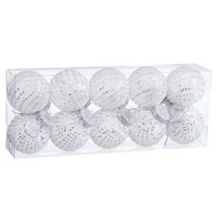 Bombki choinkowe białe srebrne plastikowe cekiny materiałowe 6 x 6 x 6 cm (10 sztuk)