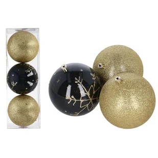 Bombki plastikowe 9 cm złoty / czarny 3 sztuki