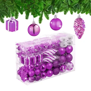Dzięki dużemu zestawowi bombek świątecznych można wspaniale udekorować choinkę. Bombki i ozdoby w różnych rozmiarach i kształtach można układać indywidualnie i gustownie. Świątecznie udekorowana choinka nie tylko rozświetli oczy dzieci, ale także stworzy przytulną atmosferę dla dorosłych w tym najwspanialszym okresie w roku. Bombki choinkowe można łatwo zawiesić za pomocą srebrnych wstążek. Szczegóły dotyczące bombek choinkowych- całkowite wymiary w pudełku wys.