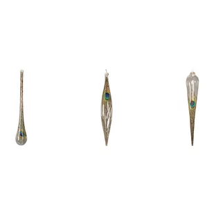 Goodwill CC DESIGN INTERIOR Zestaw 3 szklanych bombek sopli z pawim piórem 30