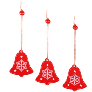 Wyjątkowe dekoracje wydobywające magiczny klimat świąt! Drewniany zestaw 3 szt. dzwoneczków w formie zawieszki świetnie będzie wyglądać zarówno, jako dodatek do większego prezentu jak i na bożonarodzeniowej choince. Nietłukący się materiał zwiększa bezpieczeństwo, dzięki temu pozwoli na tworzenie wspólnych dekoracji z najmłodszymi domownikami. W zestawie znajdują się gratisowe tasiemki, które pozwolą na zwinne oraz nieskomplikowane powieszenie zawieszek w wybranym przez siebie miejscu. Te piękne 5cm czerwone zawieszki świąteczne sprawdzą się w charakterze ozdoby choinkowej, jak również dekoracja okien.