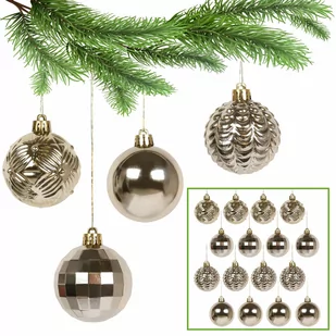 Ten zestaw plastikowych bombek choinkowych to idealny wybór dla wszystkich, którzy pragną dodać swojej choince blasku i magicznego świątecznego klimatu. Nie musisz obawiać się przypadkowego stłuczenia ozdób – te bombki są odporne na uszkodzenia, co czyni je doskonałym wyborem dla rodzin z małymi dziećmi lub osób, które często się przeprowadzają. Złote bombki posiadają różne wzory i wykończenia, które wspaniale się uzupełniają, tworząc harmonijną kompozycję. Twoje drzewko świąteczne nabierze wyjątkowego charakteru i będzie zachwycająco dopasowane do Twojego wnętrza, a różne kształty i rozmiary bombek, dają Ci pełną swobodę w tworzeniu magicznych aranżacji na choince. Zestaw zawiera 16 sztuk bombek.