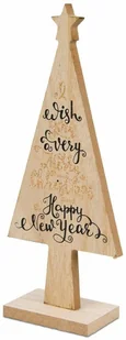 Dekoracyjne drzewko świąteczne w kształcie choinki. Choinka wykonana z drewna z nadrukiem życzeń świątecznych, zdobiona brokatem. Idealna do postawienia na stole świątecznym, kominku, parapecie okiennym. Nadruk na choince jest jed