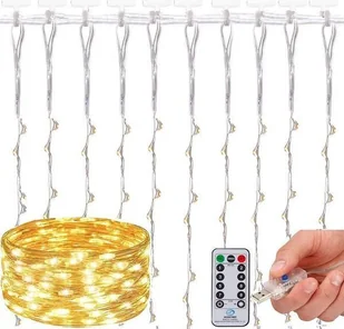 Lampki Choinkowe 300 Led Ciepły Biały Druciki Kurtyna Usb