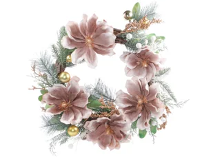 Dekoracja wisząca wianek ze świerkiem, bombkami i kwiatami na Boże Narodzenie. Wymiary: 37 x 50 cm. Opakowanie: 1 szt.