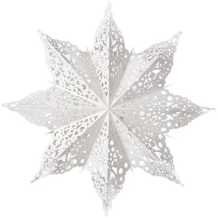 DEKORACJA PAPIEROWA PŁATEK ŚNIEGU ŚR. 64 CM BIAŁY DELUXE to piękny i efektowny element ozdobny, idealny na zimowe i świąteczne dekoracje! Papierowa konstrukcja sprawia, że jest lekka i łatwa do zawieszenia. Dzięki swoim rozmiarom, taki płatek śniegu może stać się centralnym punktem dekoracji, wprowadzając zimową atmosferę do każdego pomieszczenia.