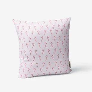 Poduszka świąteczna ze świątecznymi laskami cukrowymi na różowym tle. Świąteczna poszewka na poduszkę. Poduszki świąteczne zaprojektowane przez polskich grafików. Różnorodność rozmiarów pozwala na dostosowanie pod ...