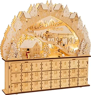 small foot 11789 kalendarz adwentowy przyjemność na nartach z drewna z 24 szufladami, piramida bożonarodzeniowa z oświetleniem LED, dekoracja bożonarodzeniowa, wielokolorowa, normalna