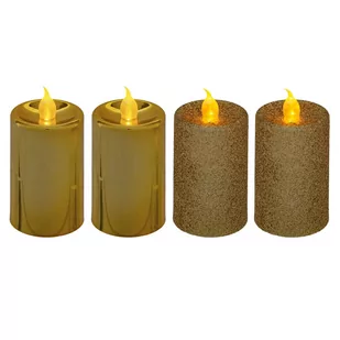 Twój dom zyska blask dzięki naszym brokatowym migoczącym świecom LED Świece LED brokatowe, 4 szt. : Te piękne świeczki LED to świetny dodatek na sezon świąteczny, który posłuży przez kilka lat. Świece LED mają wymiary 3,8 x 3,8 x 7,5 cm, dzięki czemu idealnie pasują do każdego pomieszczenia. Świąteczne kolory: Świece mają intensywne kolory i błyszczące wykończenie.