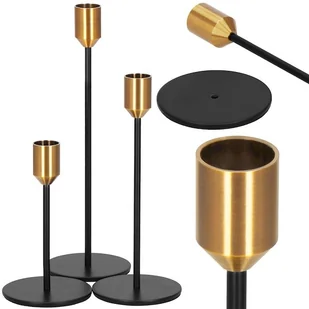 Lichtarze metalowe zestaw 3 szt. dekoracje wnętrz, wesele czarno-złote, dodające klasy każdemu wydarzeniuNiech każda okazja stanie się wyjątkowa z naszym zestawem trzech metalowych lichtarzy, które doskonale nadają się na wszelkiego rodzaju uroczystości oraz jako dekoracje wnętrz. Ich elegancki i piękny design tworzy wytworny nastrój, idealny na takie wydarzenia jak wesele. Lichtarze mogą również stanowić znakomity pomysł na prezent lub być wykorzystane jako część większych kompozycji dekoracyjnych. Uniwersalność tych świeczników sprawia, że są one przydatne podczas wielu uroczystości i eventów, zarówno w pomieszczeniach zamkniętych, jak i na otwartym powietrzu. Zestaw naszych lichtarzy to doskonały wybór dla osób, które cenią sobie elegancję, trwałość i wszechstronność. Prosta montażność tych dekoracji sprawia, że można je łatwo przestawiać i dostosowywać do różnorodnych przestrzeni i stylów, od loftowych po bardziej tradycyjne. Zapewnij sobie i swoim gościom niezapomniane wrażenia estetyczne, wybierając nasze świeczniki na każdą specjalną okazję.