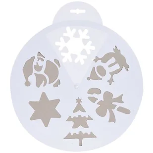 Średnica: 30 cm Materiał: tektura, plastik Przeznaczenie: do formowania kształtów ze sztucznego śniegu Szablon ze wzorami pomoże nadać odpowiedni kształt podczas tworzenia dekoracji ze sztucznego śniegu. Wzory takie jak: pingwin, bałwan, gwiazdka, śnieżynka, choinka i rózga odpowiadają świątecznemu okresowi.