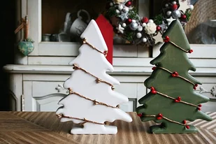 Zestaw 2 drewnianych choinek do dekoracji - produkty ręcznie wykonane z drewna -Każdy egzemplarz jest wyjątkowy - Kolor biało-zielony WYMIARY, ok.: Choinka 20 x 13 x 2 cm ZASTOSOWANIE: do dekoracji dom ...