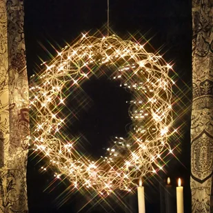 Wieniec LED CURLY - 80/120/136 lamp LED emituje delikatne światło. Wieniec LED CURLY to przepiękna ozdoba w okresie bożonarodzeniowym, która każde pomieszczenie rozświetli ciepłym białym błyszczącym światłem z 80 lamp LED i stworzy świąteczną atmosferę. Wieniec świetnie wygląda nie tylko w oknie lub powieszony w pokoju, ale stanowi również zachęcającą dekorację drzwi. Przewód doprowadzający ma długość 3,5 m.