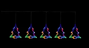 KURTYNA girlanda 50 LED z zasilaczem Idealna do ozdobienia każdego rodzaju pomieszczeń, sprawdzi się świetnie jako ozdoba świąteczna. Światło stałe o żywej barwie Mocny i wytrzymały kabel Energooszczędne diody (6W) Przepalenie 1 diody nie wygasza zestawu Zasilanie sieciowe 230V Długość przewodu z lampkami 1,6m Przewód zasilający 1,4m Odległość między lampkami 40cm Choinki wielokolorowe na przeźroczystym przewodzie Do stosowania w pomieszczeniach Posiada dodatkowe gniazdo (można łączyć ze sobą max 3 komplety) Wysokość choinki 20cm Szerokość 16cm (w najszerszym miejscu)