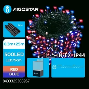 Lampki choinkowe Aigostar Lampki choinkowe na 4 baterie AA czerwono niebieskie Taśma świetlna płaska na 4 baterie AA