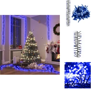 Ten klastrowy sznur świetlny ma znacznie większą liczbę diod LED na metr niż tradycyjny sznur świetlny LED, tworząc znacznie pełniejszy i bardziej intensywny efekt świetlny, podobny do petardy. Kolor światła: niebieskiKolor kabla: CiemnozielonyMateriał: polichlorek winylu (PVC), miedźCałkowita długość wraz z przedłużaczem: