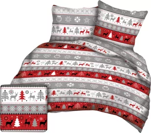 Inni Pościel 160x200 bawełniana świąteczna wzór Renifery, choinka czerwona WWW6
