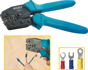 Szczypce do zaciskania Hazet 4656-1Zakres zastosowania: zlacza kablowe DIN, koncówki kablowe, wtyki plaskie, zlacza okragle, gniazda okragle, równolegle i laczniki. $380 Zagniatanie rdzenia i izolacji za jednym razem. $381 Solidny