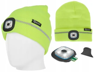 GEKO CZAPKA ZIMOWA Z LAMPKĄ LED OSTRZEGAWCZA ŻÓŁTA