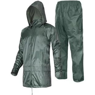 LAHTI PRO Komplet przeciwdeszczowy zielony rozmiar L Opis: W komplecie znajduje się kurtka oraz spodnie wykonane z PVC oraz poliestru. Zestaw posiada wodoodporne szwy. Otwory wentylacyjne pod pachami i na plecach zwiększające cyrkulację powietrza. Wodoodporny kaptur z regulacją, chowany w kołnierzu zamykanym na suwak .