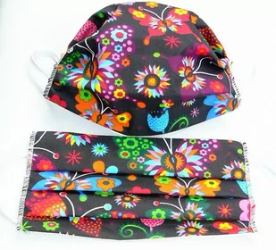 Maseczka Maska Ochronna Na Twarz Łowickie Motyle Kolorowe Na Czarnym Tle