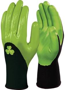 Rękawica z poliestru 100%. Powłoka nitrylowa na stronie chwytnej, palcach i do połowy strony grzbietowej. Rękawica w kolorze zielonym, rozmiar 6. Odporna na oleje i smary z powłoką nieprzemakalną. Zapewnia dużą manualność i dobry chwyt.