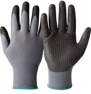 - Rękawice ochronne gemomech 665. wykonane z poliamidu i pokryte pianką nitrylową w wewnętrznej części dłoni, dodatkowo nakrapiane nitrylem.