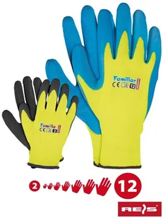 Reis FAMILIAR - Rękawice ochronne z poliestru, spieniony lateks dla całej rodziny, 2 kolory w opakowaniu - 2-12.