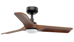 Drewniane łopatki tego wentylatora sufitowego w jasnym kolorze otaczają silnik, tworząc efekt świetlny. Jest on aktywowany za pomocą dołączonego pilota zdalnego sterowania. Ten czarny wentylator ma 6 regulowanych prędkości posiada funkcję rewersu i może być instalowana na pochyłych sufitach. Typ montażu: sufitowy Materiał: