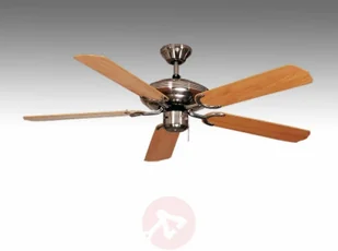 Obudowa silnika i inne elementy metalowe posiadają szlifowaną i chromowaną powierzchnię, zaś skrzydła są utrzymane w ciepłej tonacji buku. Pociągowy włącznik pozwala na regulację prędkości na 3 poziomach, zaś dodatkowy włącznik umożliwia przełączanie kierunku obrotów, dzięki czemu w lecie wentylator wytwarza ożywczą bryzę, a w zimie równomiernie rozprowadza zalegające pod sufitem ciepłe powietrze. Wentylator posiada okablowanie wstępne w celu późniejszego montażu pilota na podczerwień.