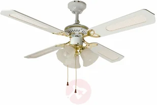 Tradycyjny wentylator sufitowy CALICE z 3-punktowym oświetleniem i włącznikiem pociągowym
