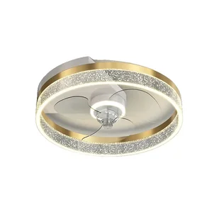 Lampa sufitowa z wentylatoremWykończenie: złote z brokatowym wzoremWariant: Bbezstopniowe ściemnianie.