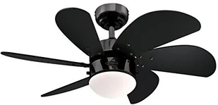 Kompaktowy wentylator sufitowy Turbo Swirl do małych pomieszczeń Kompaktowa konstrukcja i silna cyrkulacja powietrza to najistotniejsze cechy sześciołopatkowego wentylatora sufitowego Turbo Swirl. Jego łopatki wykonano w czarnym kolorze, u środku umieszczając lampę z opalowego szkła. Po załączeniu włącznikiem pociąganym zapewnia atmosferyczne oświetlenie pomieszczenia. Wentylator można doposażyć, zamawiając przełącznik ścienny lub pilot. Pasujące elementy do nabycia w dziale ,,Akcesoria dodatkowe".