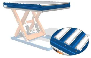 Na platformie przenośnik rolkowy (przenośnik o wym. 2 000x 900mm, 13 szt. rolek, O76mm) tak